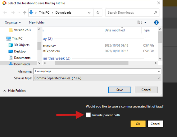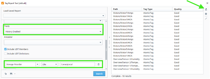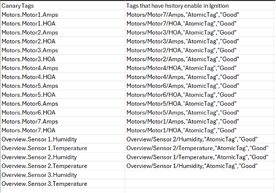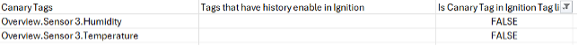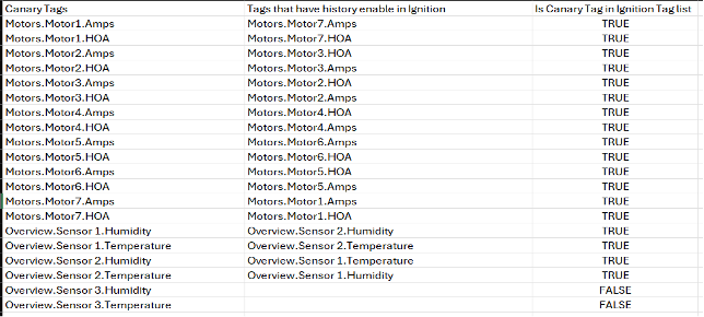 - Get a report of the relevant tags in Ignition that were logging to Canary, along with the Tag list from Canary for the specific dataset tied to the Collector.