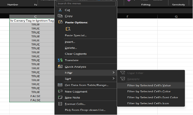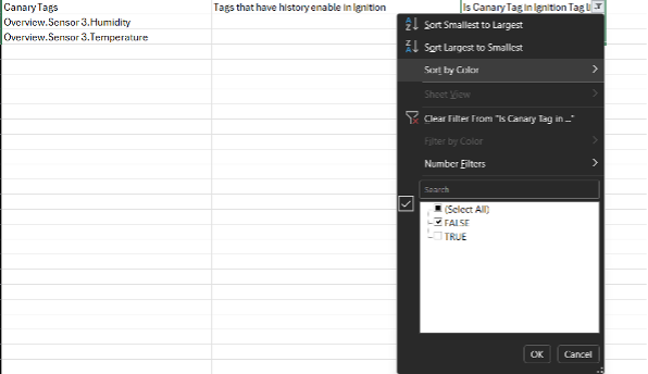 This will compare each row to see if the Canary Tag is still in Ignition. We also set the data to filter by this column so we can narrow the list.
