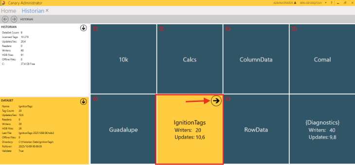 2. Find and enter the Dataset where you are logging to from Ignition.