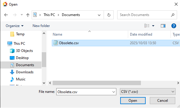 - Create a csv and make the list of tags you wish to obsolete with no headers.